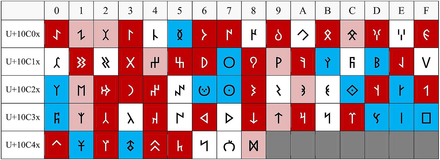 => Описание кодов букв (10C00-10C48) кодовой страницы Unicode версии 13.0: